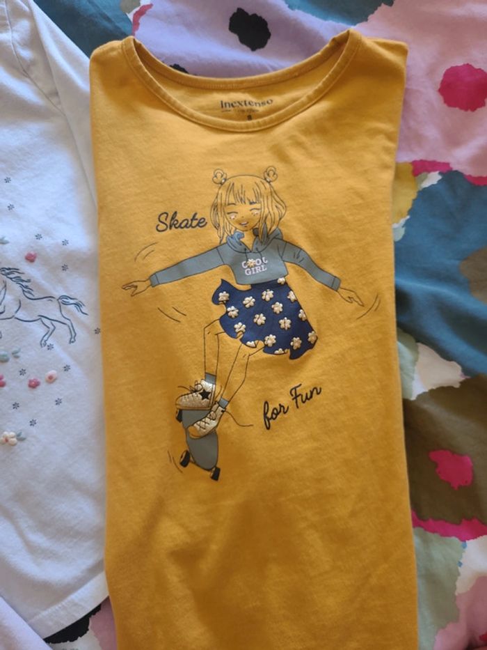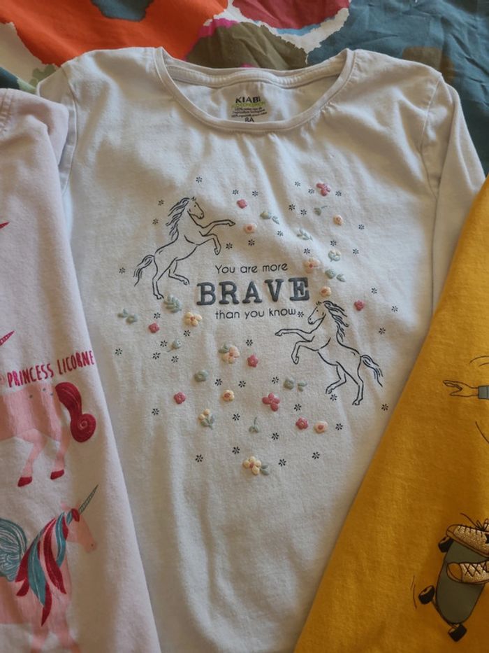 3 t shirt manches longues Pas de taches ni trous, en bon état 1 rose pâle in extenso 1 moutarde in extenso 1 blanc kiabi 8ans #elodietopart_fillehuitans