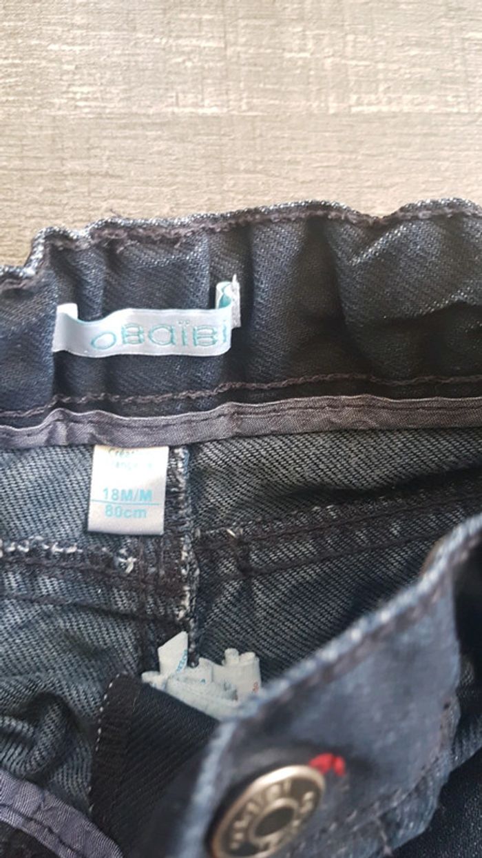 Jean 18mois Obaibi Genou délavé un peu mais pas de trous Lien resserrable à la taille #elodietopart_garcondixhuitmois