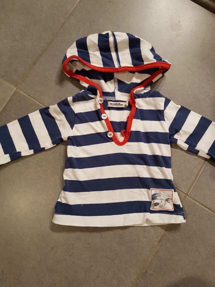 T-shirt manches longues 9mois Capuche intégrée Style mariniere #elodietopart_garconneufmois