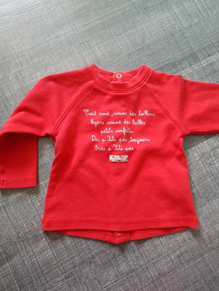 T-shirt manches longues rouge Fermeture pression dos #elodietopart_garconsixmois