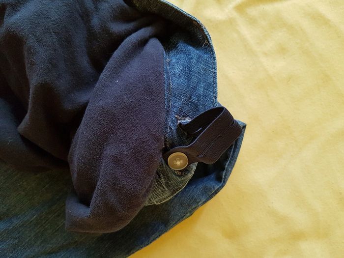 Jean grossesse taille 38 Resserrable à la taille par élastique Bon état, seules qq paillettes ont disparu des poches arrières, voir photo. #elodietopart_grossesse