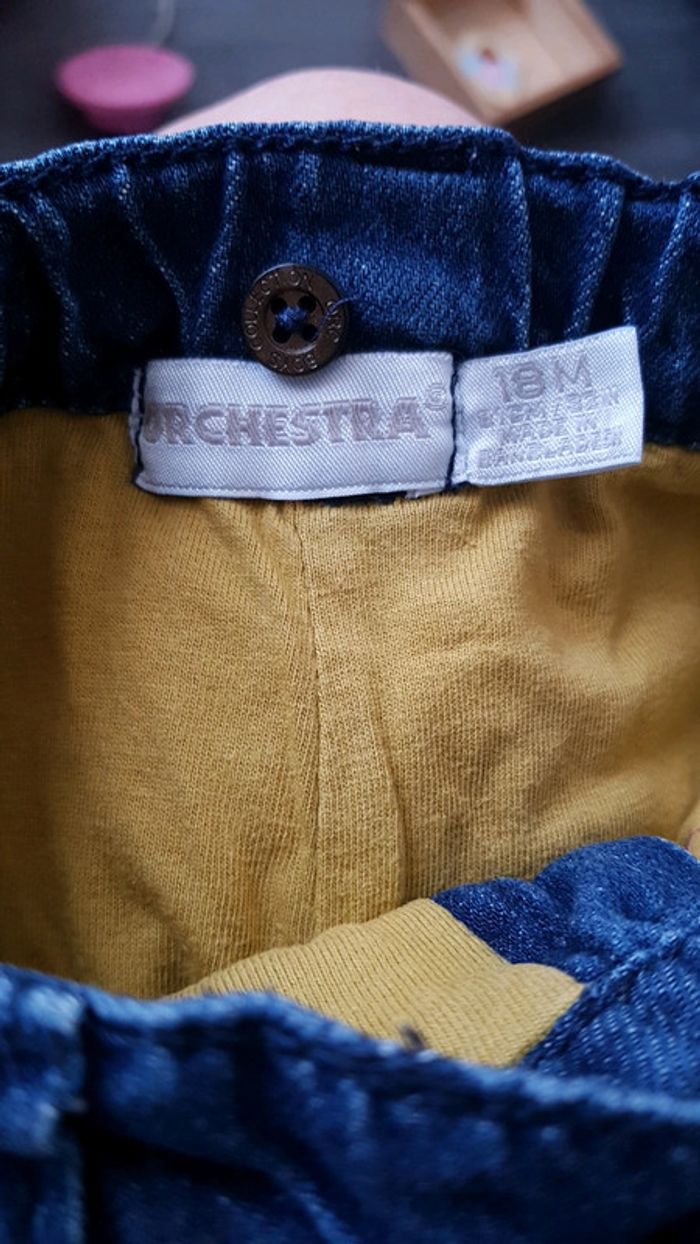 Pantalon épais orchestra Jean doublure moutarde, avec bretelles #elodietopart_garcondixhuitmois