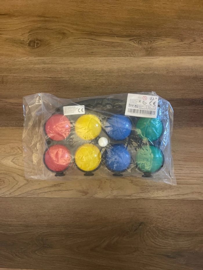 Vendeur Professionnel WDK out 2 play Pack de 8 boules de pétanque en plastique rouge, jaune, bleue et verte 1 cochonnet 1 panier de transport Dès 3 ans. Expédition rapide et soignée