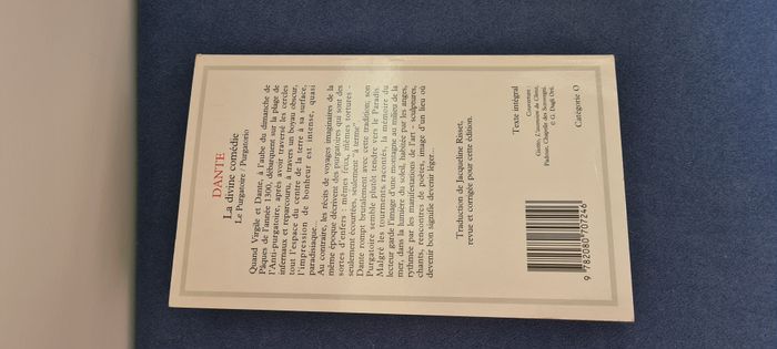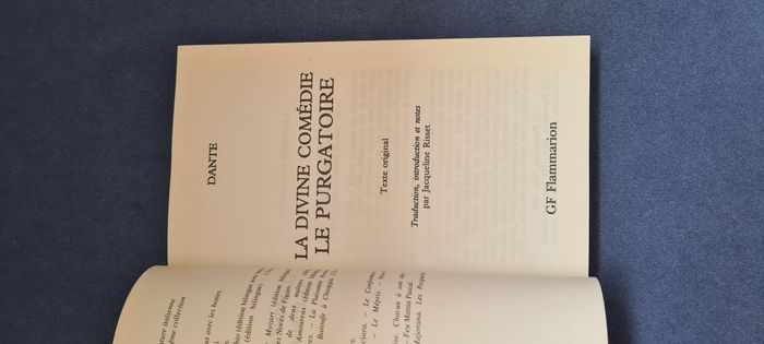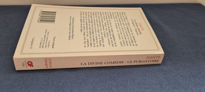 La Divine Comédie - Le Purgatoire Version Bilingue Dante Traduction, introduction et notes de Jacqueline Risset GF Flammarion Texte intégral Les versions françaises et italiennes sont imprimées en face à face sur chaque double page. Permet de lire les 2 versions en "simultané" pour apprécier toutes les subtilités du texte. Format type poche : 17.8 x 10.8 Lors de la lecture utilisation de marque-page. Pas de page cornée, ni d'annotations En très bon état #classique #littératureitalienne #dante #versionbilingue #françaisitalien #flammarion #lepurgatoire #ladivinecomedie #jacquelinerisset #mar-taylivre