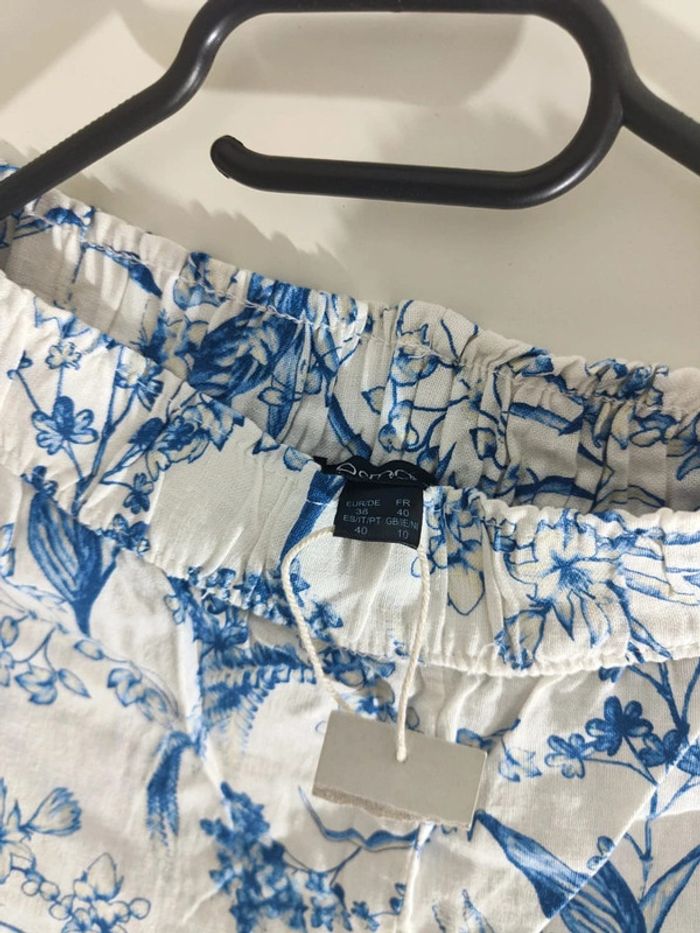 Pantalon Imprimé en Coton Floral Bleu et Blanc - photo numéro 10