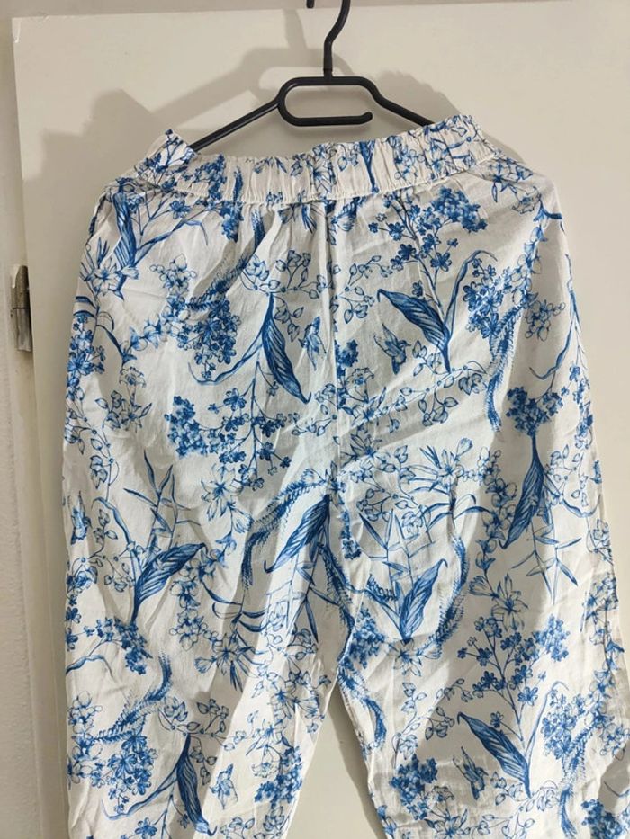 Pantalon Imprimé en Coton Floral Bleu et Blanc - photo numéro 2