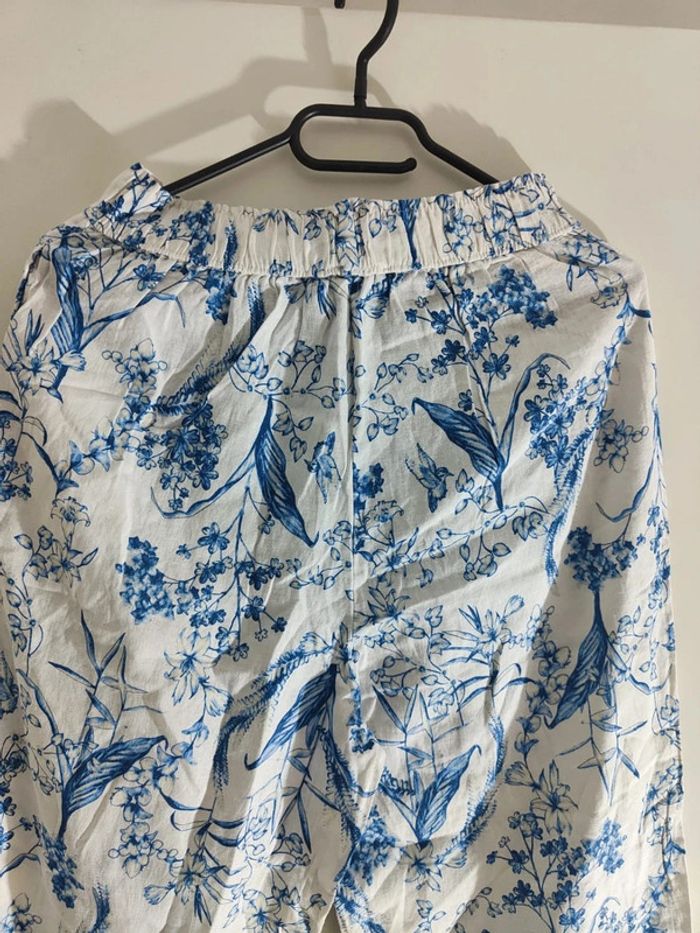 Pantalon Imprimé en Coton Floral Bleu et Blanc - photo numéro 9