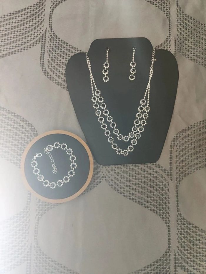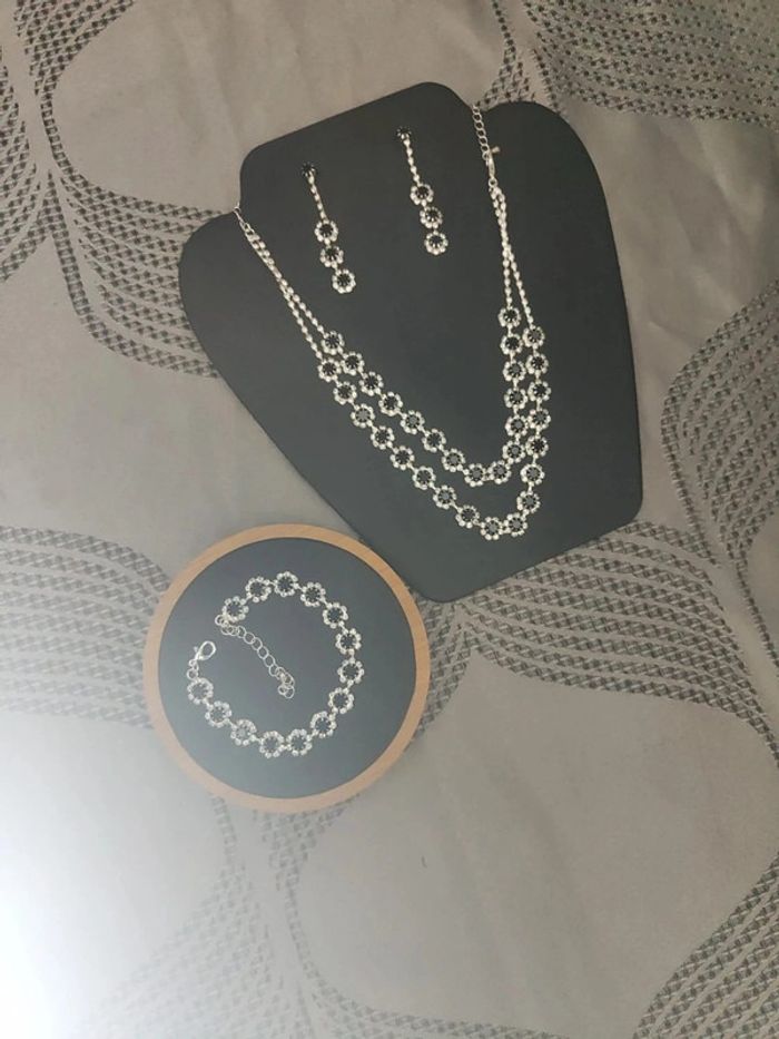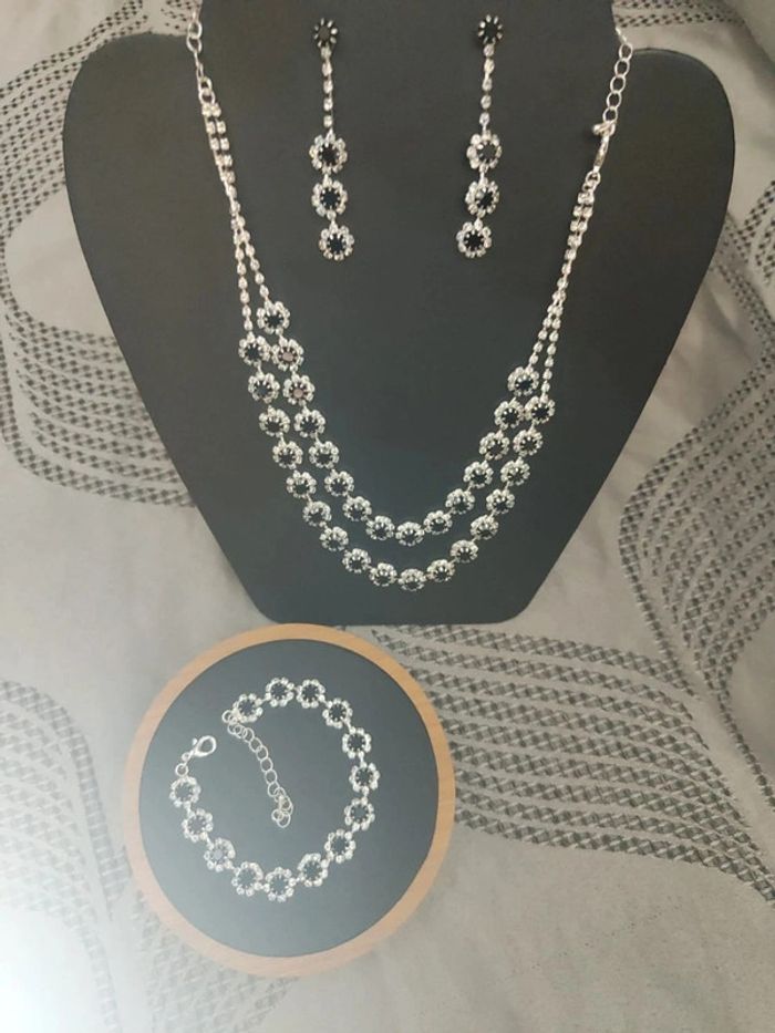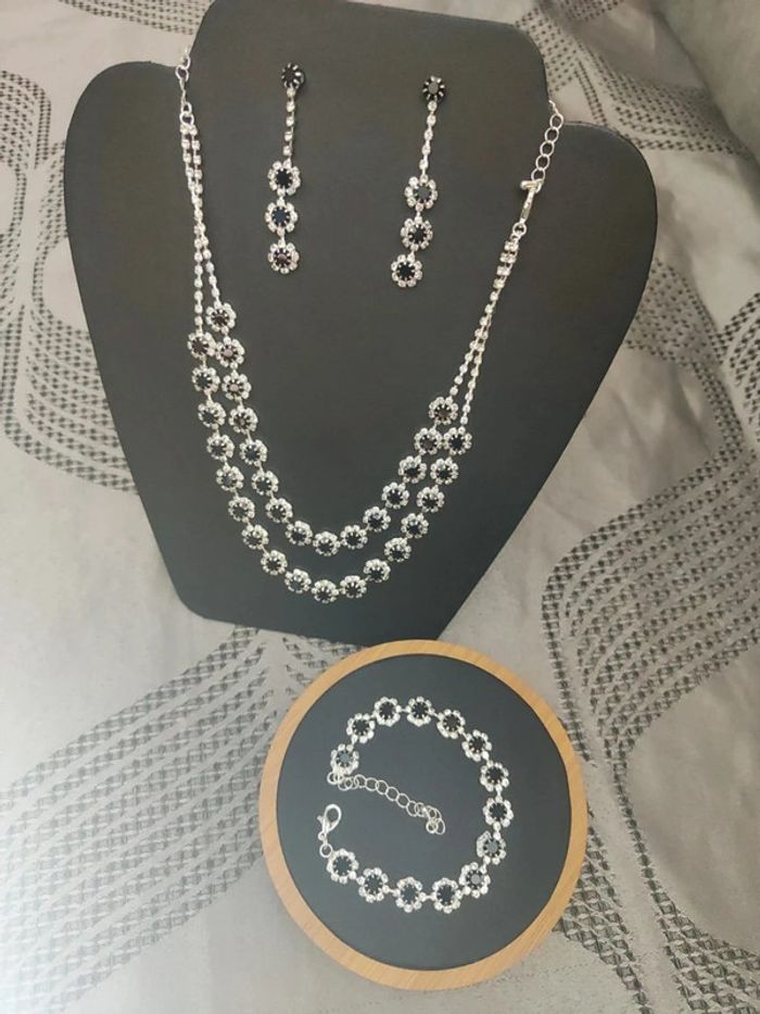Magnifique parrure chic Parrure complète 💎 Collier 💎 Bracelet 💎 Boucles d'oreilles Neuf