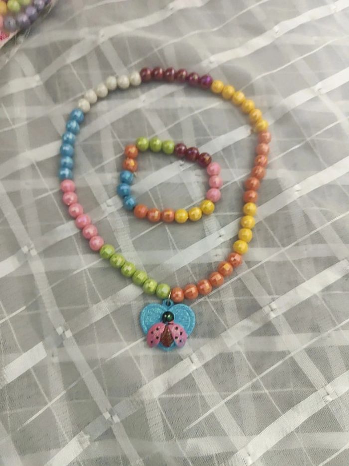 Ajoutez de la couleur à votre style!Ce collier et bracelet avec papillon égayeront n'importe quelle tenue enfantine.