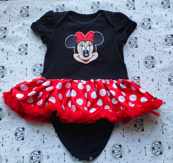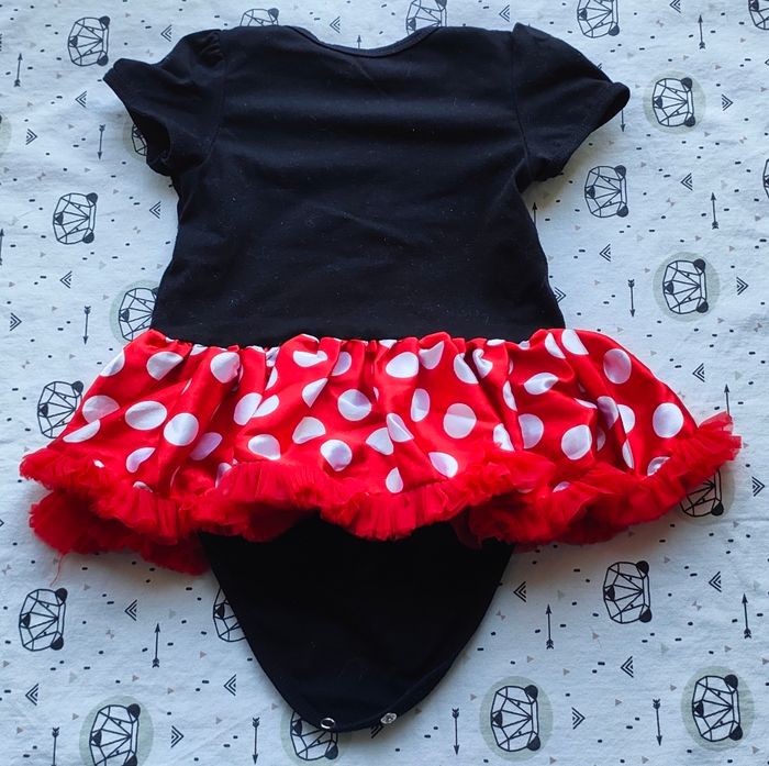 Robe Minnie noir et rouge à pois blanc avec bodie intégré en très bon état sans marque pour fille taille 12 mois
