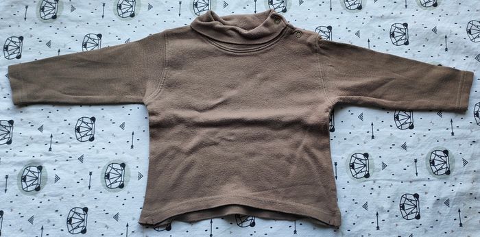 Pull col roulé marron en bon état sans marque pour garçon taille 12 mois