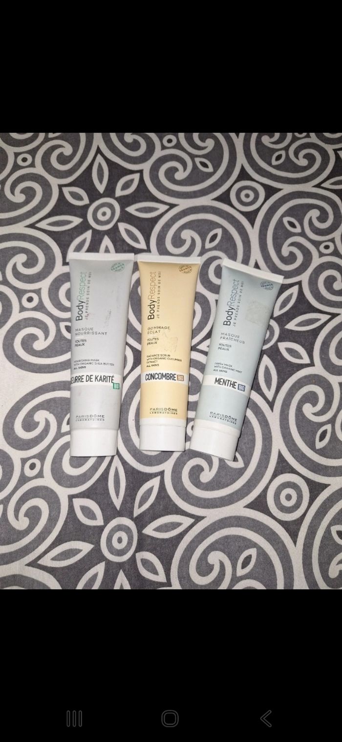 Lot de 3 tube gommage et masque Beurre de karité bio Concombre bio Menthe bio Neuf