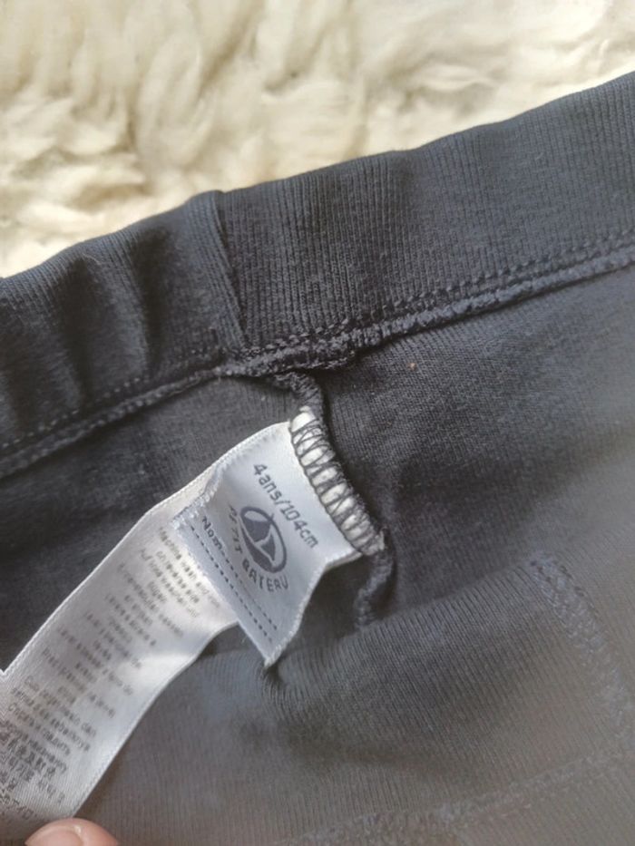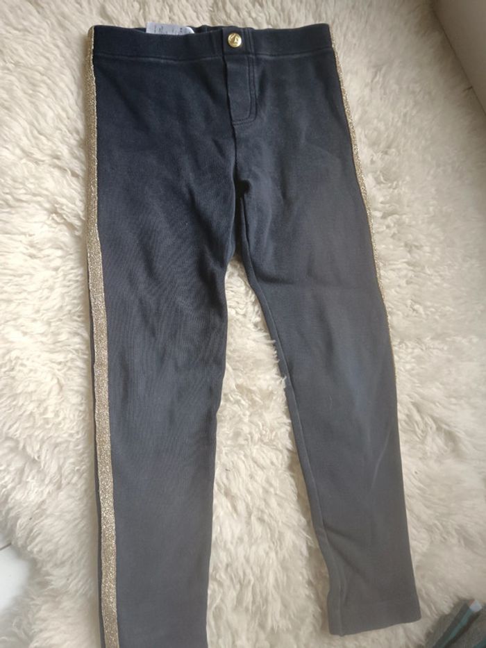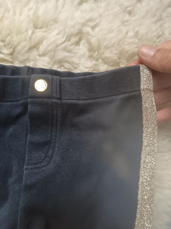 Jegging fille 4 ans bleu marine avec bande doré pailleté sur le côté et bouton doré
