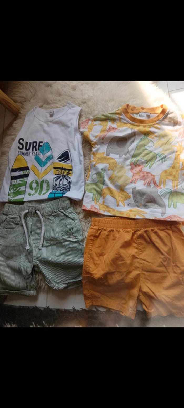 Lot de 2 shorts et 2 t shirts parfait pour l'été 12 mois.Très bon état .différentes marques