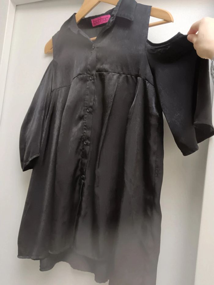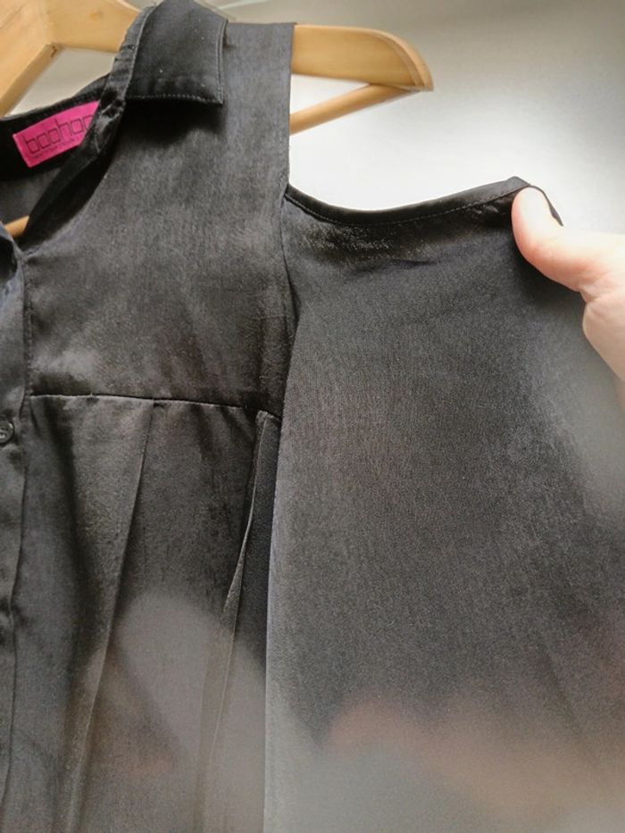 Chemisier noir manches 3/4 avec ouverture sur les épaules. Coupe ample. Taille 38/40