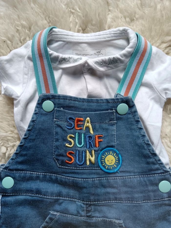 Joli ensemble bébé 3 mois parfait état jamais porté bodie manche courte avec message "je t'aime mon bébé" brodé sur le col trop mignon et petite salopette confortable car toute élastique même les lanières. Bodie sergent major salopette mots d'enfants Mixte
