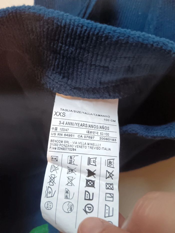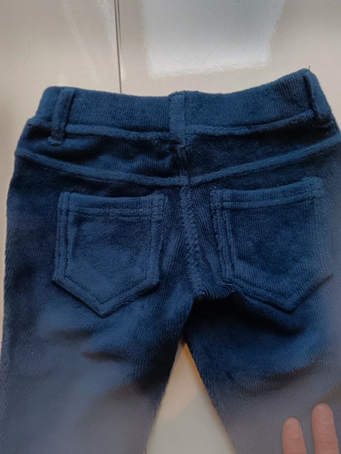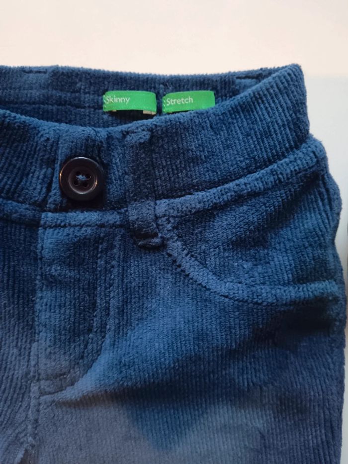 Pantalon skinny stretch très confortable,M en velours côtelé bleu,faux bouton qui ne s'ouvre pas car élastique à la taille très facile à enfiler pour les enfants. pratique.tres bon état 3-4ans