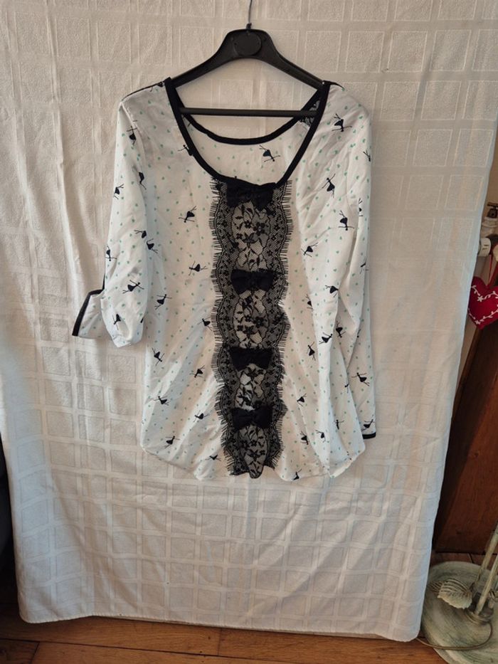 ⬇️mes autres annonces pour femme en taille 38 👉 #cg89femme38 une blouse originale avec dentelle sur les épaules et au dos. Elle mesure 49 cm aux aisselles et 67 cm de longueur très bon état - taille 38 #blouse #tunique #top #chemise