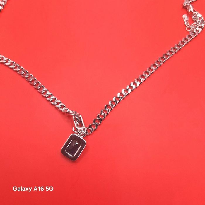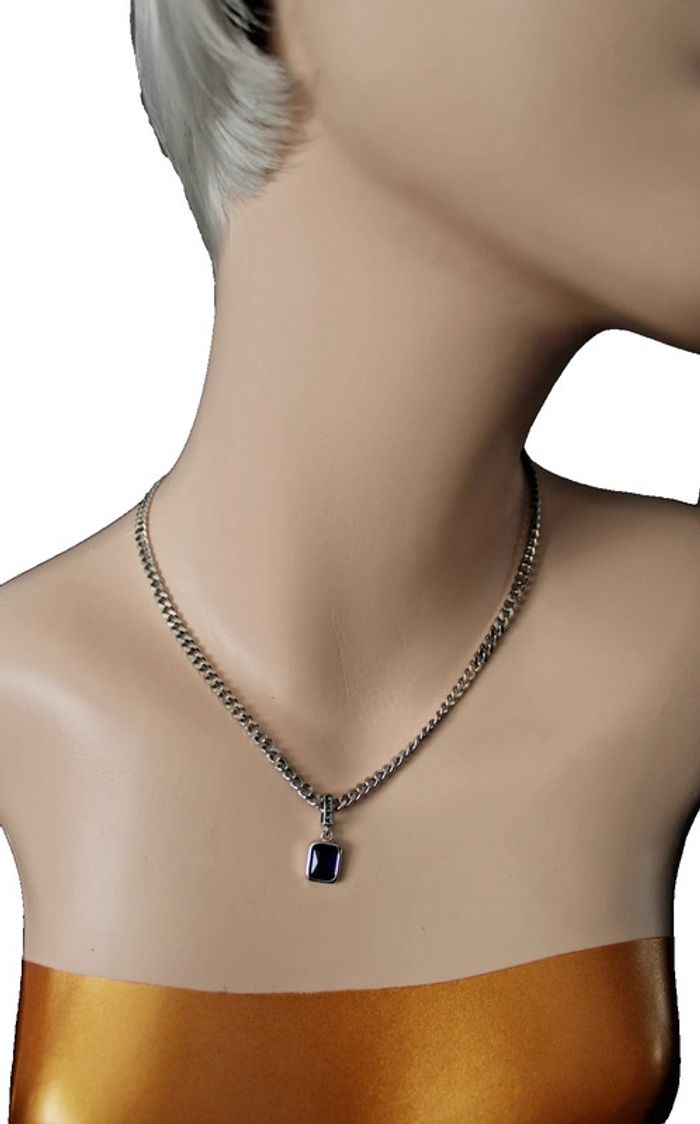 Chaine collier en argent 925  + pendentif argent et pierre zircon bleu très foncé longueur 42 cms - photo numéro 4