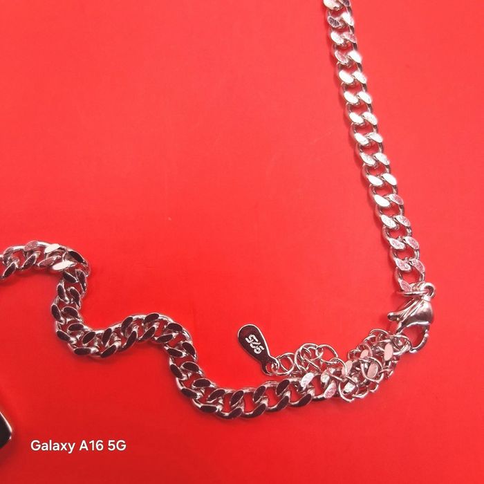 Chaine collier en argent 925  + pendentif argent et pierre zircon bleu très foncé longueur 42 cms - photo numéro 5