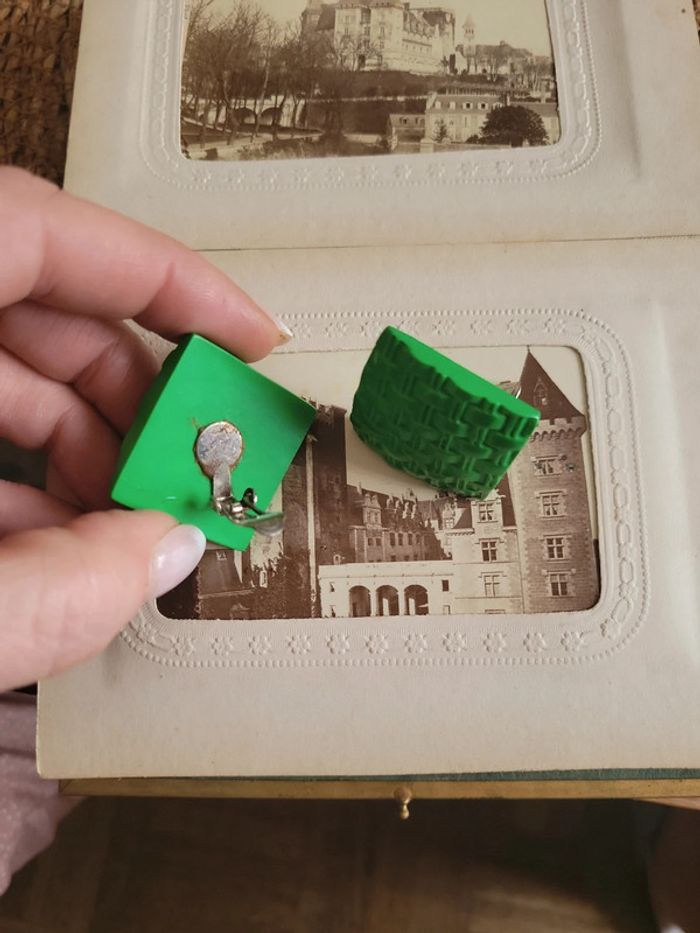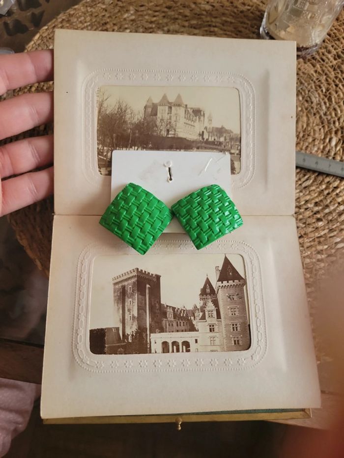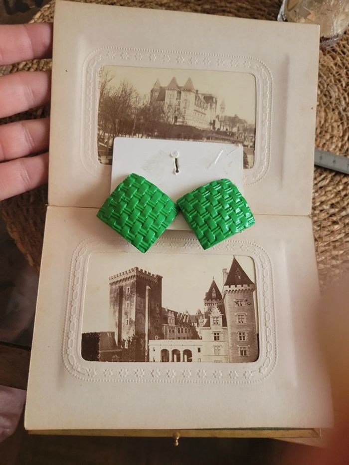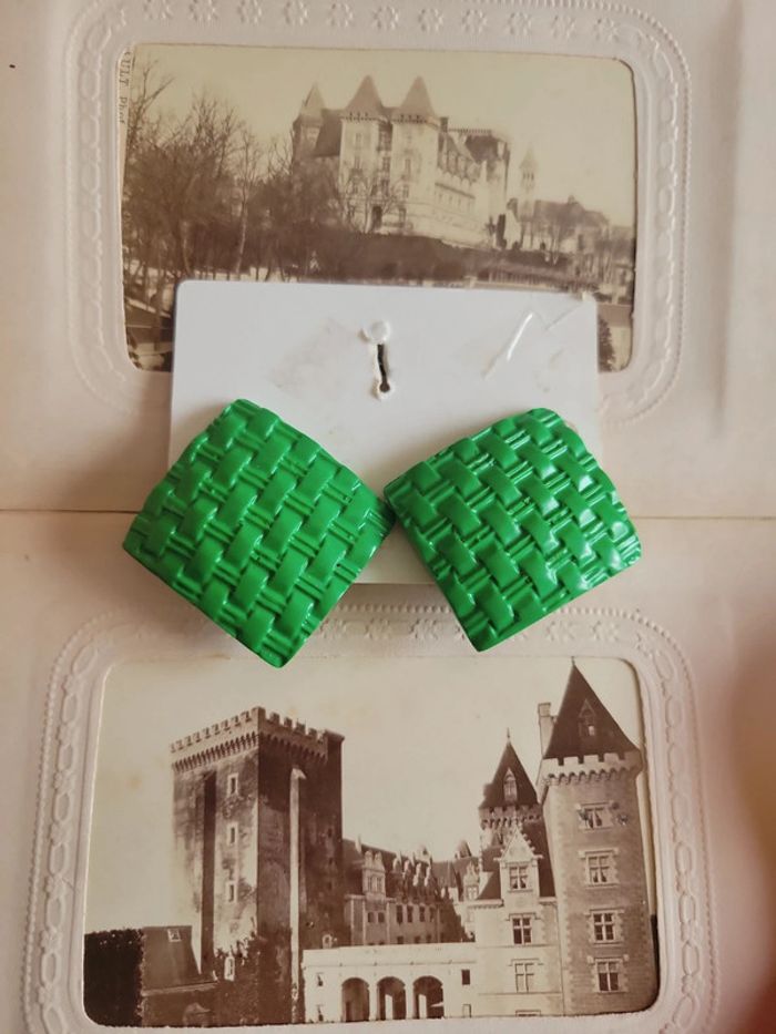 Clips carré vert menthe tressé vintage - photo numéro 6