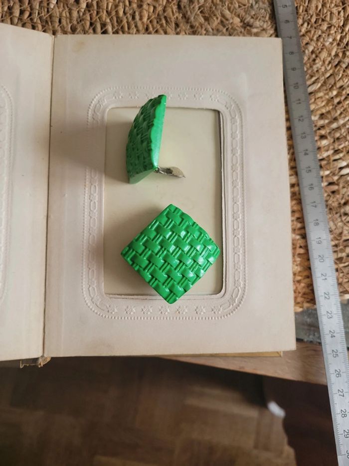 Clips carré vert menthe tressé vintage - photo numéro 5