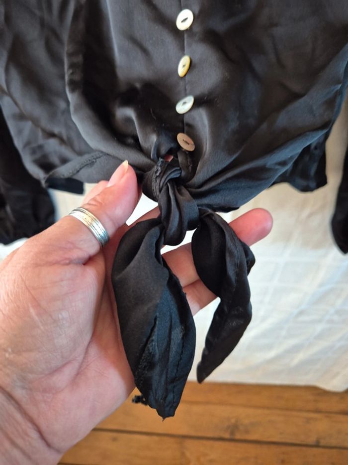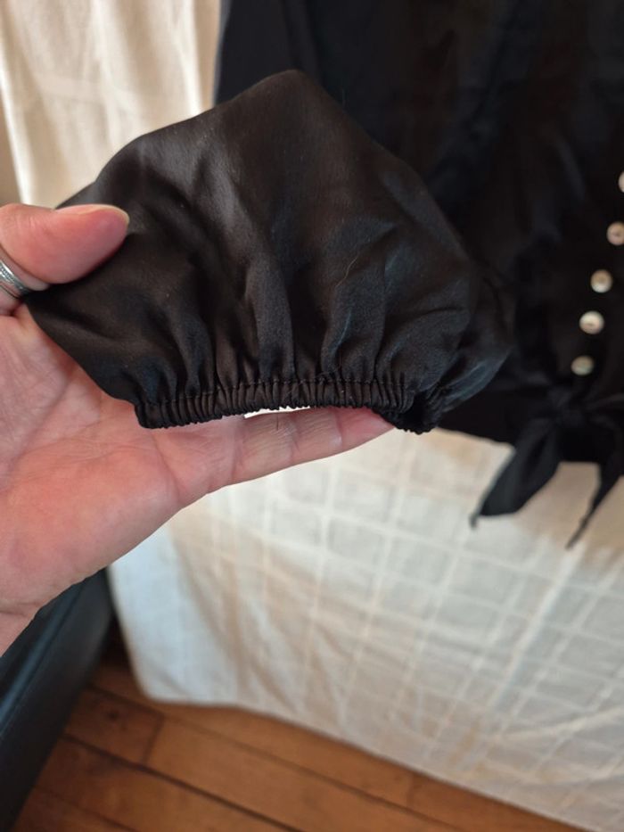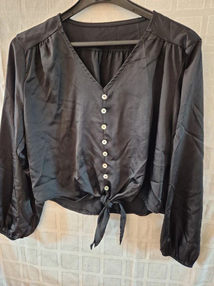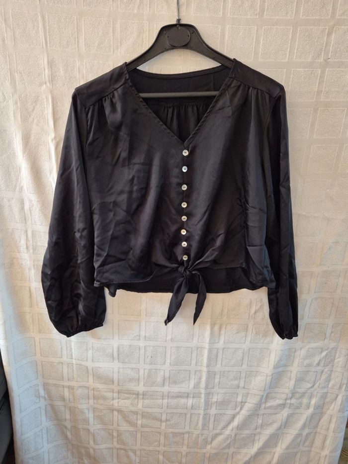 ⬇️mes autres annonces pour femme en taille 40 👉 #cg89femme40 une blouse ou top court avec manches longues et nouette devant. Elle mesure 54 cm aux aisselles et 43 cm de longueur. très bon état - taille 40 #chemise #blouse #top #haut #satin