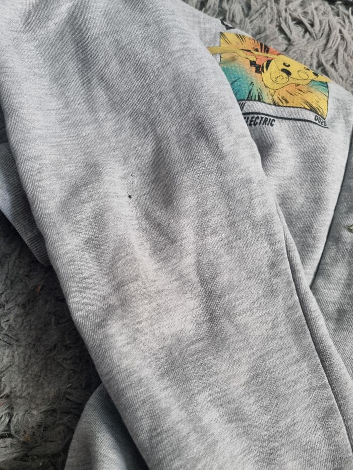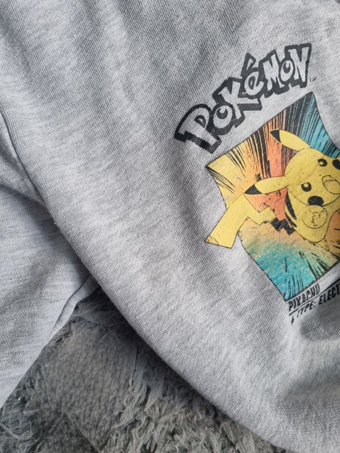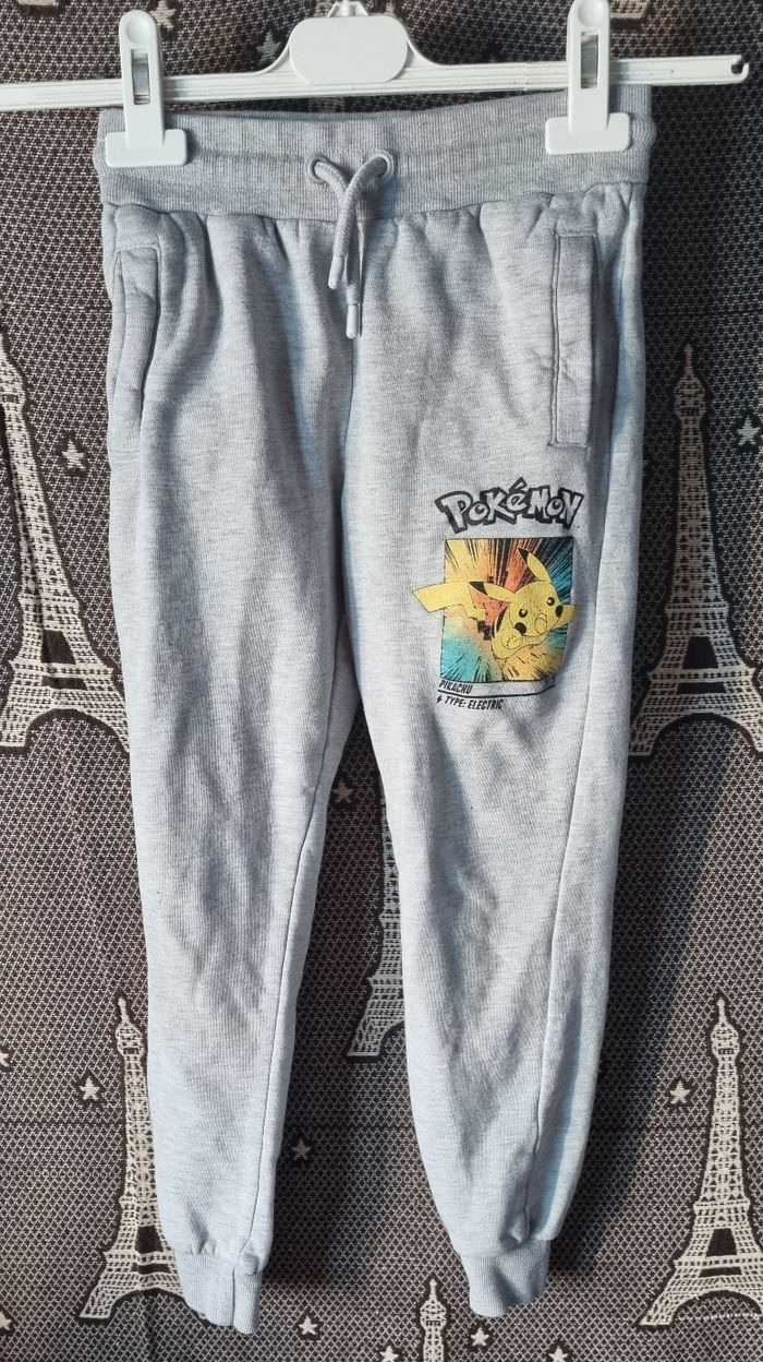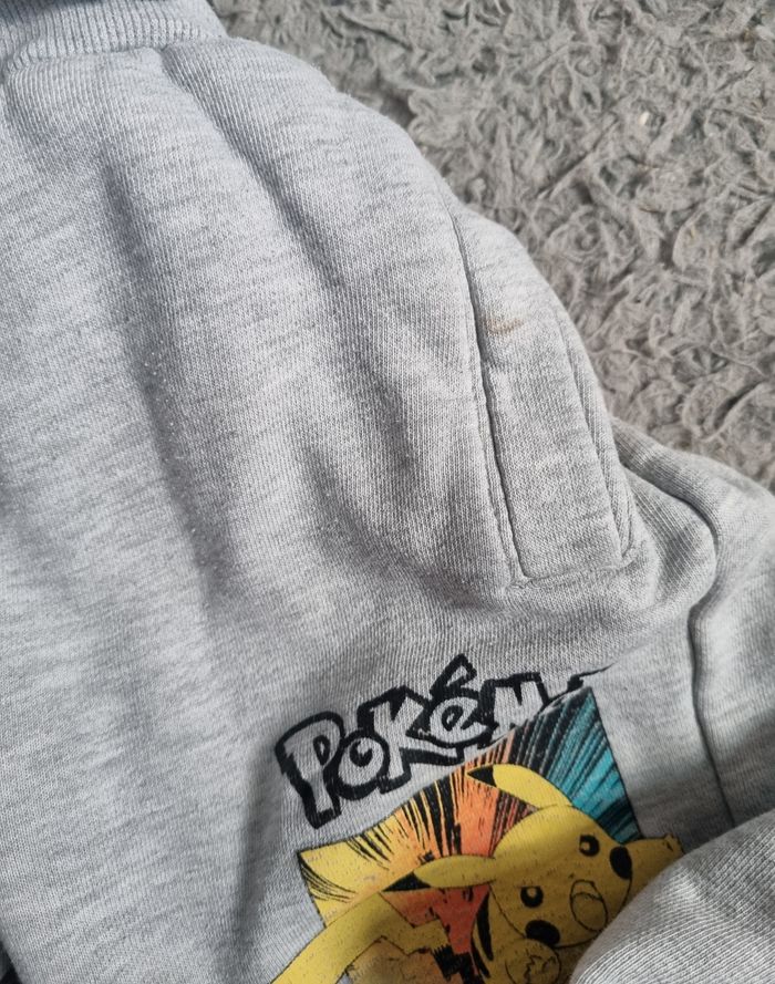Pantalon de sport gris avec Pikachu, taille 9-10ans marque Pokemon, élastique à la taille avec cordon, 2 poches, de légères taches voir photos et un petit trou.