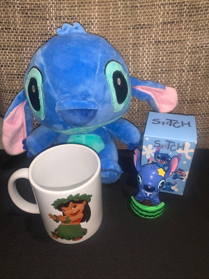 🧸 Lot Stitch🧸 Le lot comprend : - Un mug avec Stitch et Lilo en illustration - Une peluche Stitch ~ 20 cm - Une figurine Stitch aléatoire avec la boite ~ 9 cm Bonne visite📱