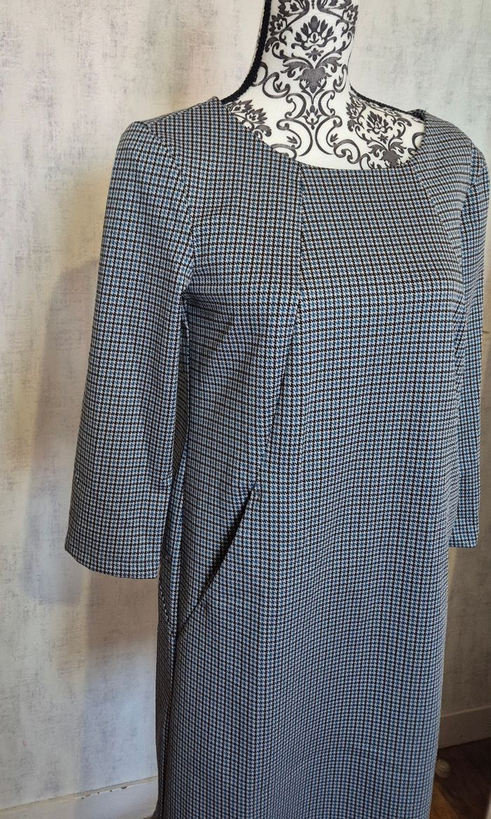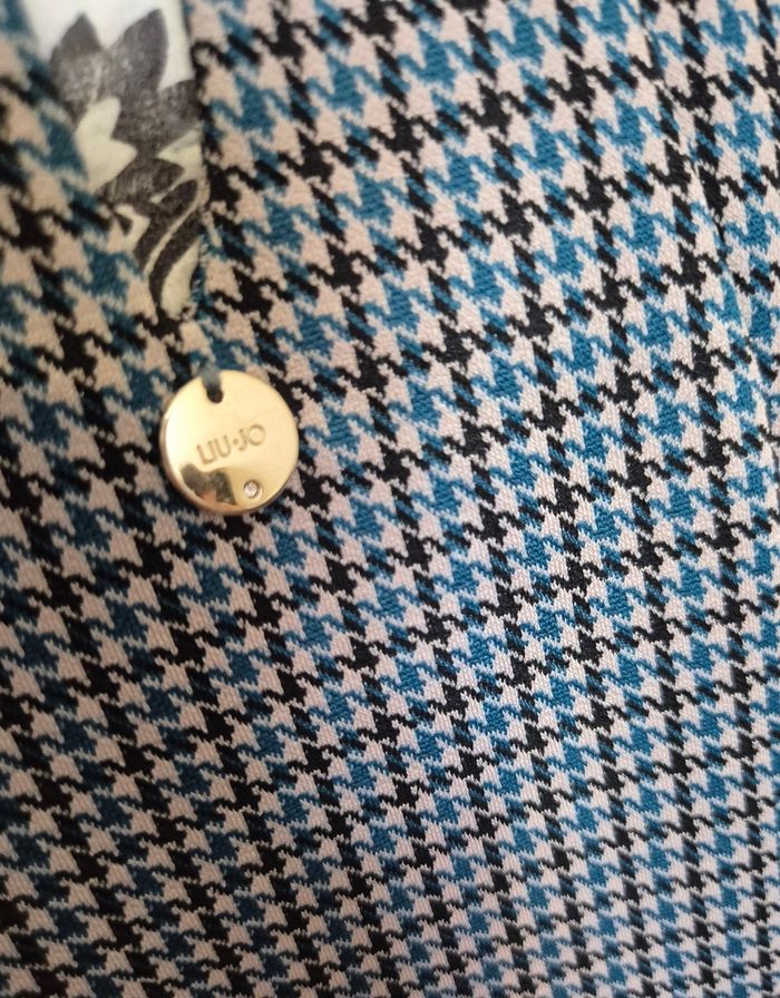 Robe courte en tissu extensible à manches 3/4, avec fermeture en goutte par bouton dans le dos et broche amovible avec logo en métal. Couleur noir et bleu motif chevrons LIU JO Tissu principal :58 % polyester, 37 % polyamide, 5% élasthanne Doublure principale : 68 % acétate, 32 % polyester Très bon etat #robefemme #robe #robechevrons #robeliujo #liujo #robecourteliujo #liujo38 #liujowoman #liujodonna #liujodress #liujorobe38 #taille38