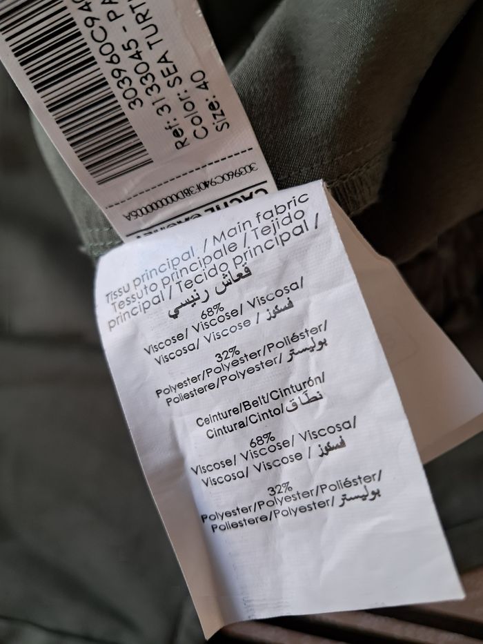 Pantalon taille élastiquée au dos Manque la ceinture Voir photo pour les matières