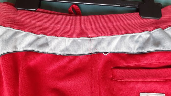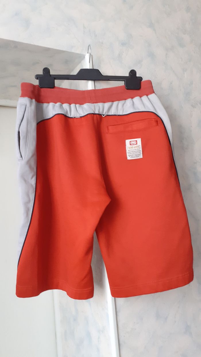 Vends un short long, 84 % polyester, 16 % coton, épais, molletonné à l'intérieur, couleur rouge et gris, marque Ecko unltd, taille M. A noter : 2 petits défauts sur la ceinture dans le dos dus à l'usure (voir photo 3). Longueur sur le côté : 60 cm Largeur de la ceinture à plat : 40 cm.