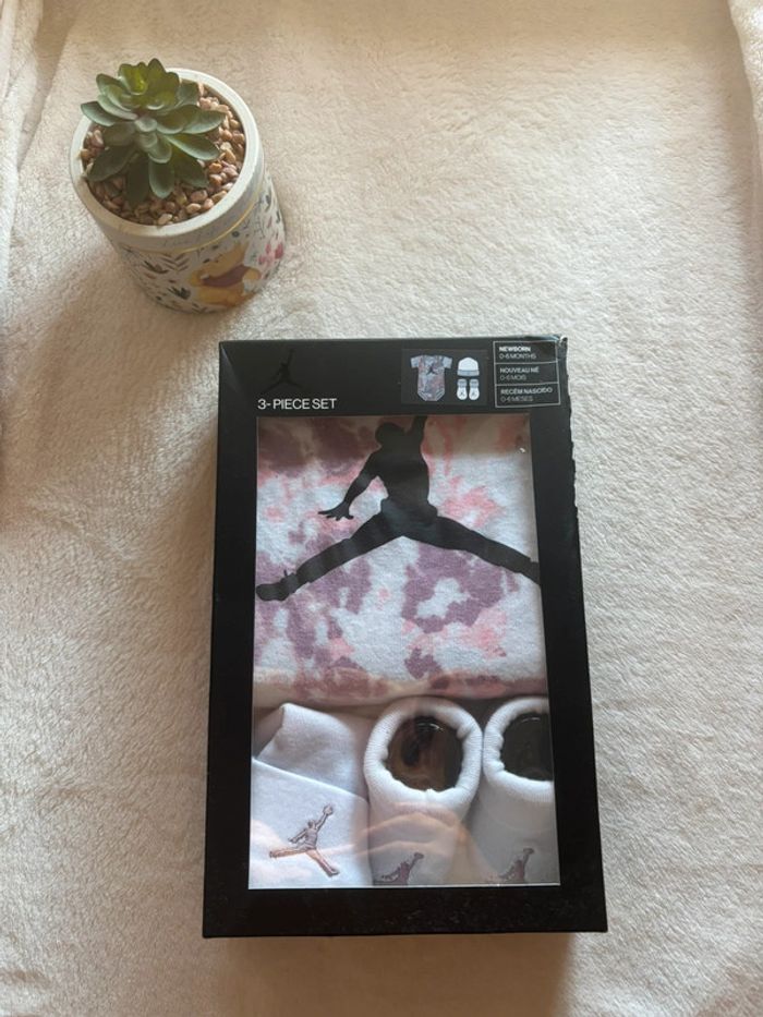Coffret Jordan ( Bodie / body / bonnet et chaussette ) Neuf avec étiquette Taille : 0/6 mois #3moiskellyz33 #6moiskellyz33