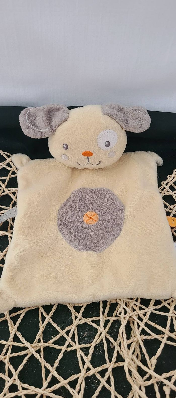 Doudou plat chien jaune rond gris croix orange Nicotoy - photo numéro 1