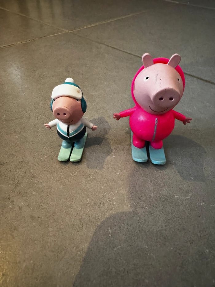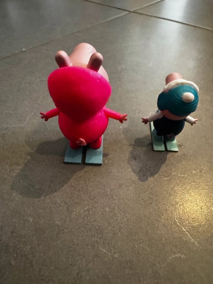 Lot de 2 personnages Marque: Hasbro Modèle: Peppa Pig - Maman Pig & George Couleurs: Rose, bleu turquoise & blanc Dimensions approximatives: 6cm * 8cm * 5cm Très bon état (voir les photos) D'autres articles de marques pour enfant dans mon inventaire