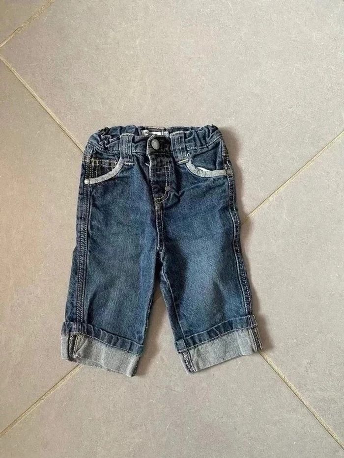 Jean à bord retroussé Marque: Tape à l’œil Couleur: Bleu Taille: 6 mois Composition: 100% coton Très bon état (voir les photos) D'autres articles de marques pour garçon dans mon inventaire