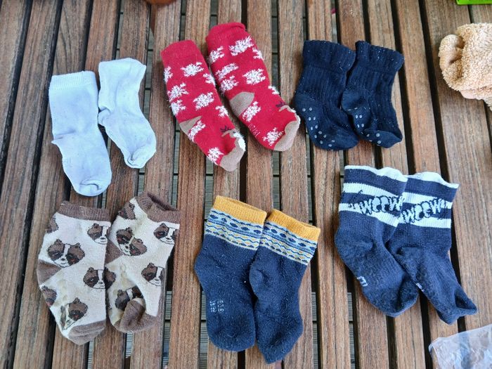 Lot de 6 paires de chaussettes, dont 3 avec antiderapants sous les pieds - trois en 18-20 - trois en 19-22 Bon état