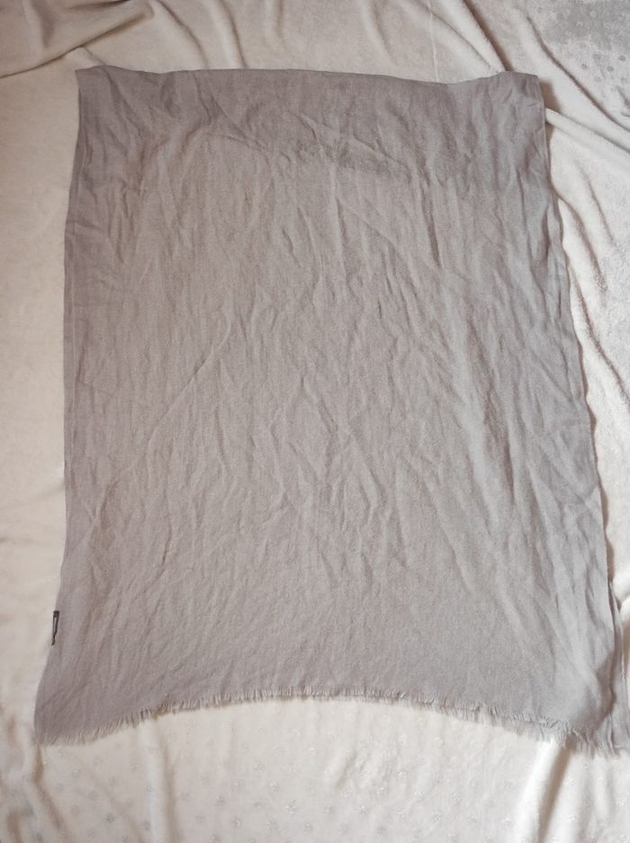 superbe et longue écharpe / foulard gris clair en coton de monoprix femme en parfait état. Dimensions L 210 x L 78 cm