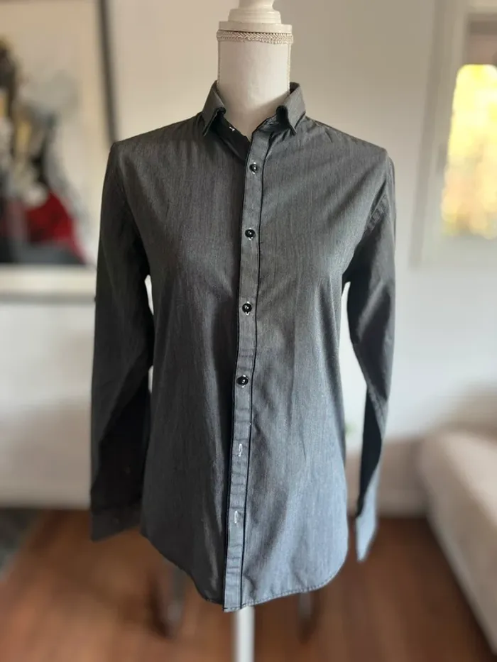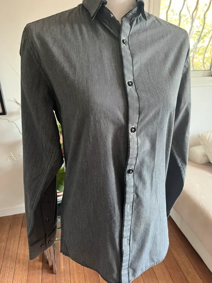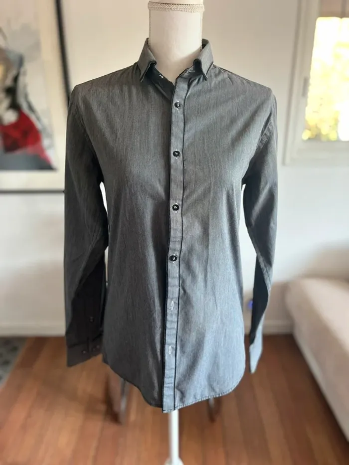 Chemise chic homme grise finement lignée taille 37/38 slim fit - photo numéro 1