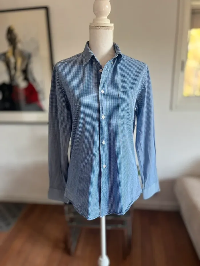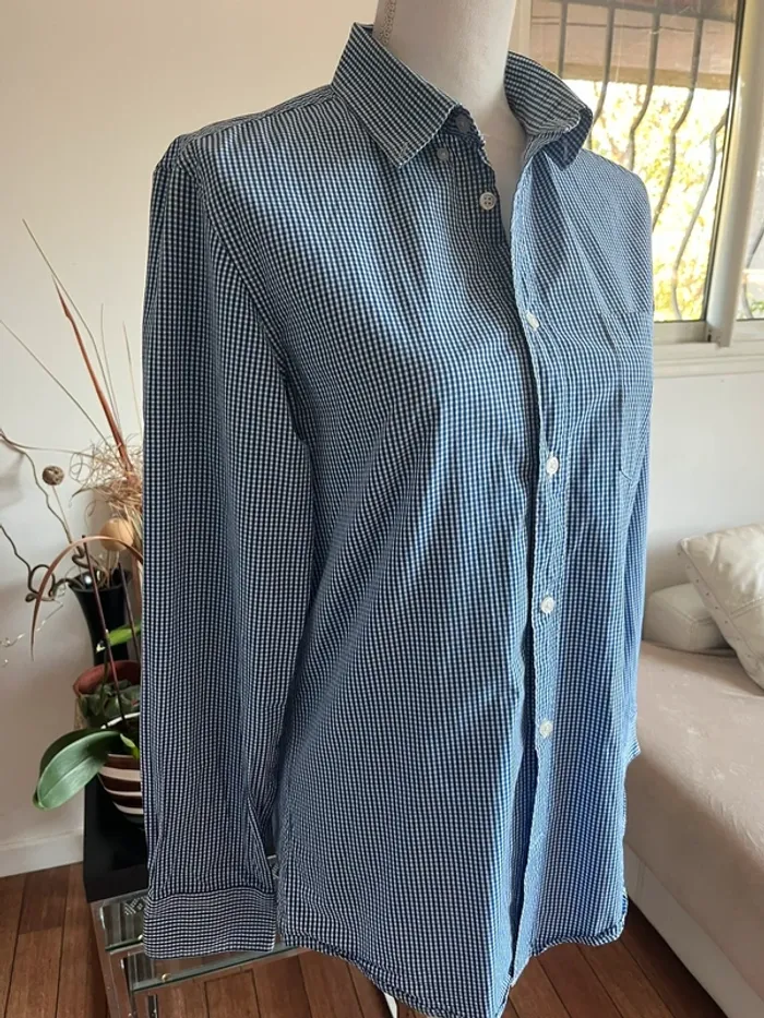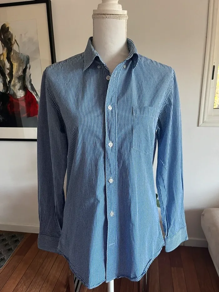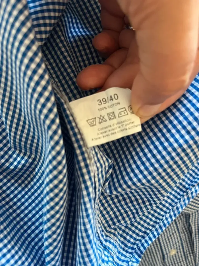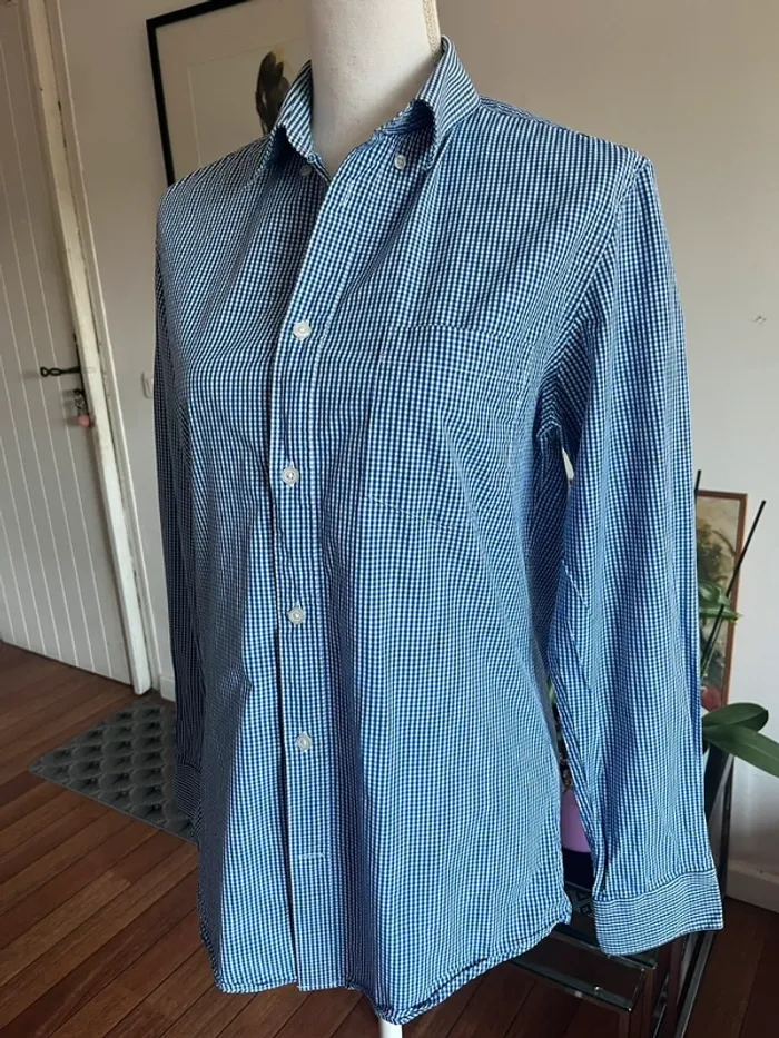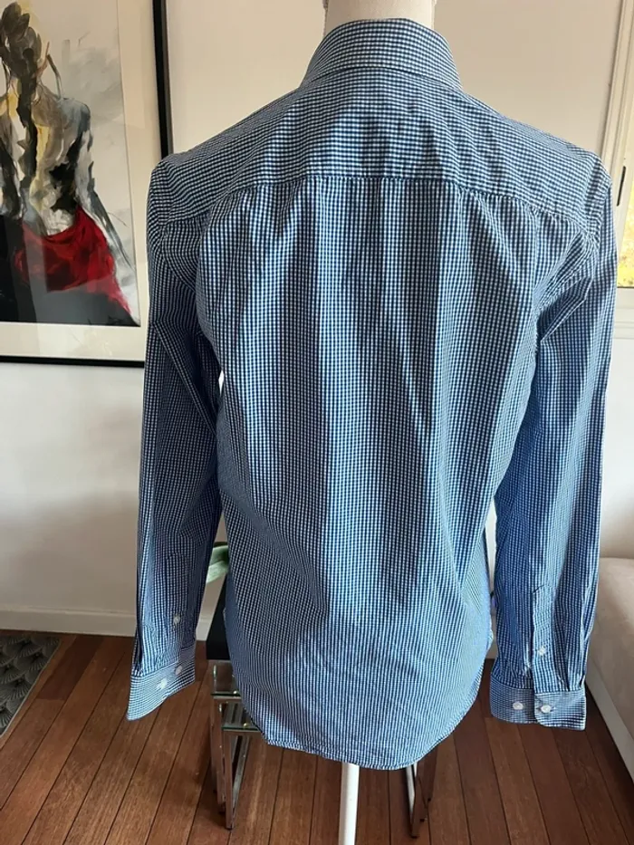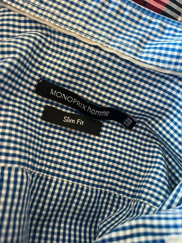 Chemise homme manches longues petits carreaux bleu et blanc Monoprix tailleur 39/40