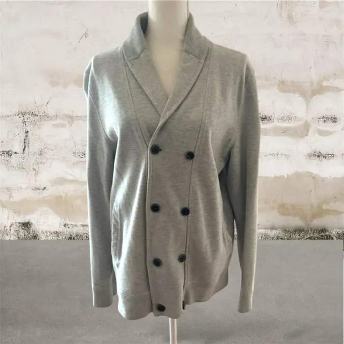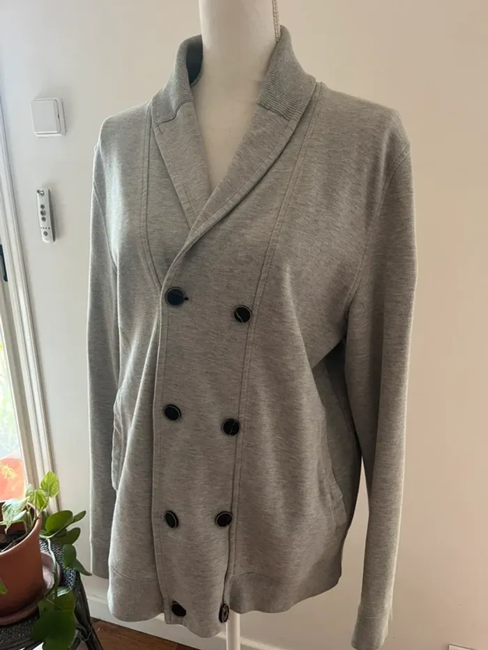 Cardigan gris clair col châle coton taille L marque H&M - photo numéro 1