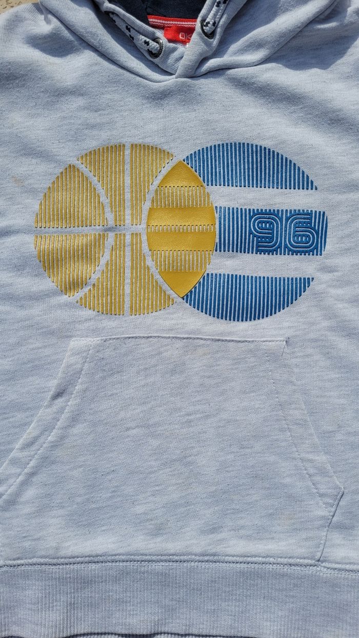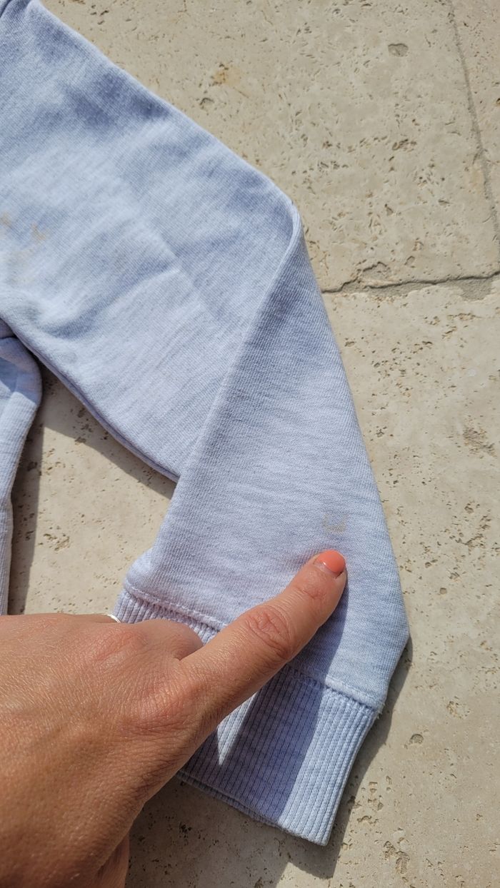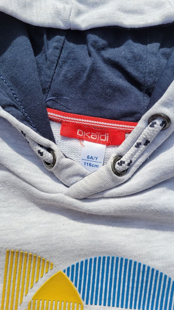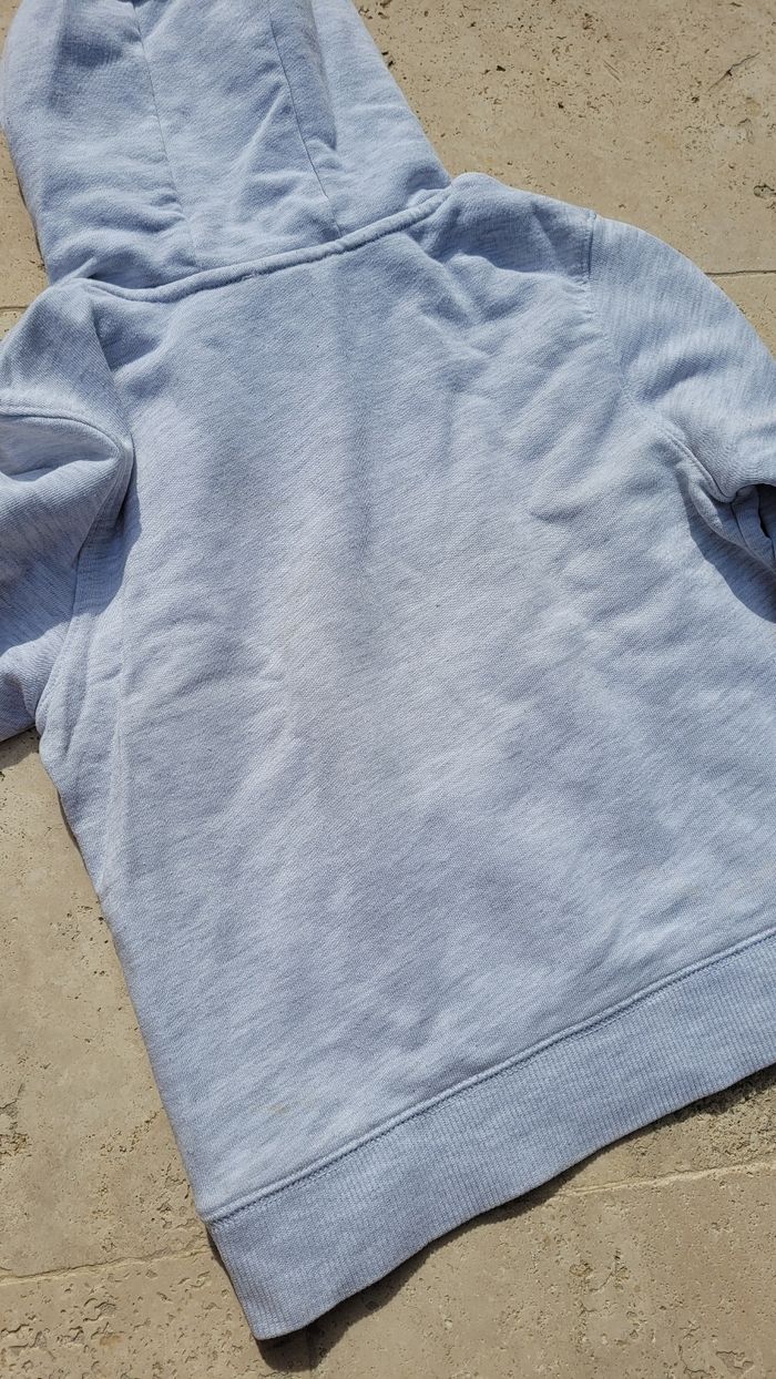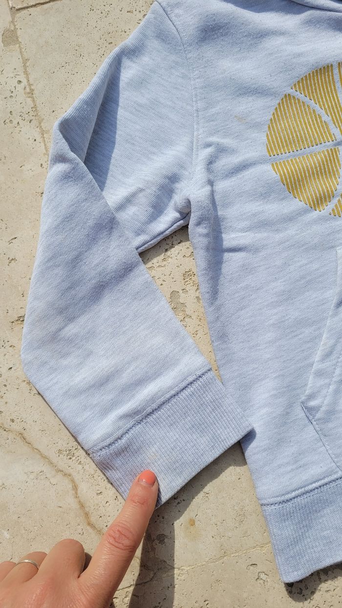Sweat à capuche gris clair Okaïdi 6ans 116cm. 1ere main. Plusieurs tâches à revoir.