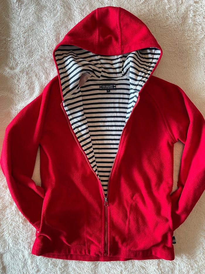 Sweat à capuche Hublot – 12 ans Joli sweat à capuche rouge Hublot, en très bon état. Extérieur rouge uni et intérieur à rayures marines, parfait pour un look casual et tendance. État : Très bon état, bien entretenu. Expédition rapide. #Hublot #SweatEnfant #SweatCapuche #Garçon12Ans #ModeEnfant #LookMarin #Rouge #CasualKids