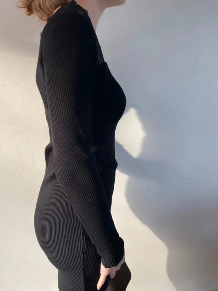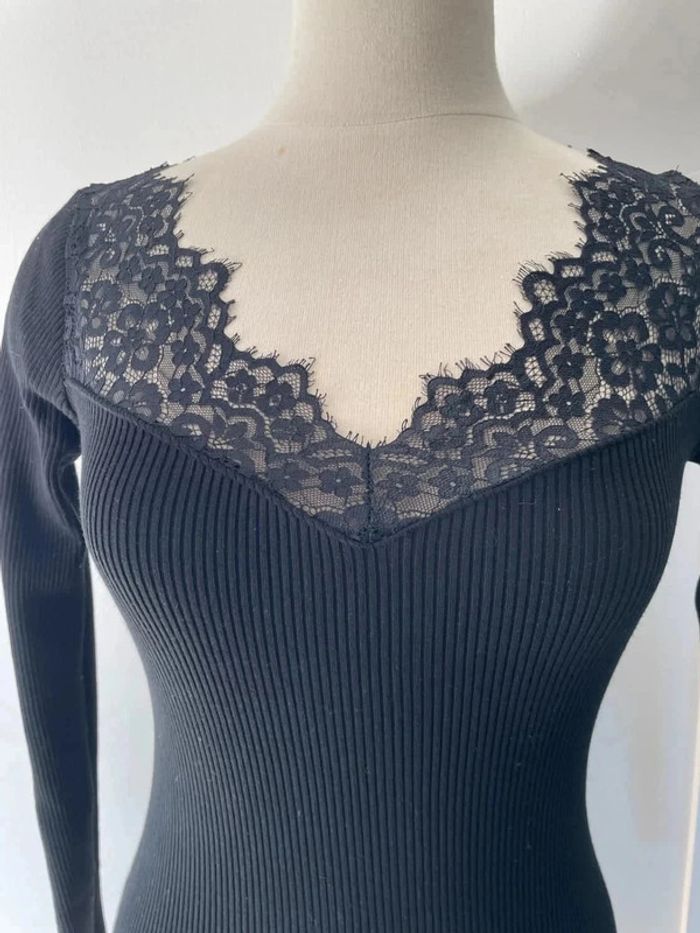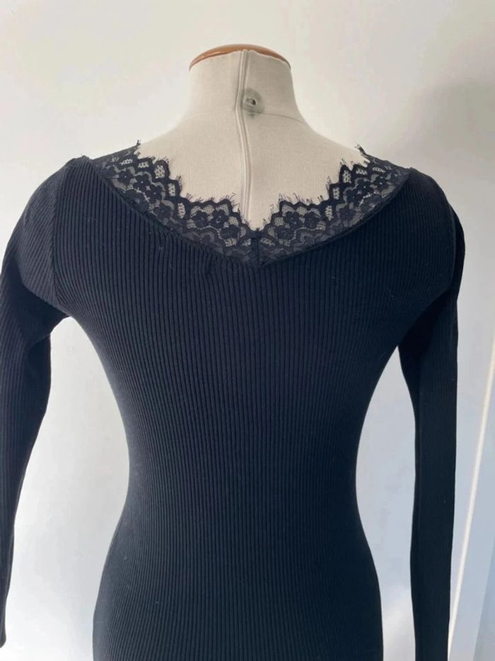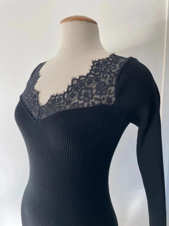 Robe pull noire col dentelle chaude et chic - photo numéro 2