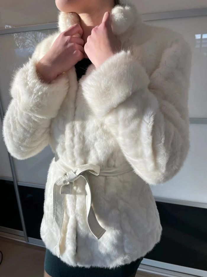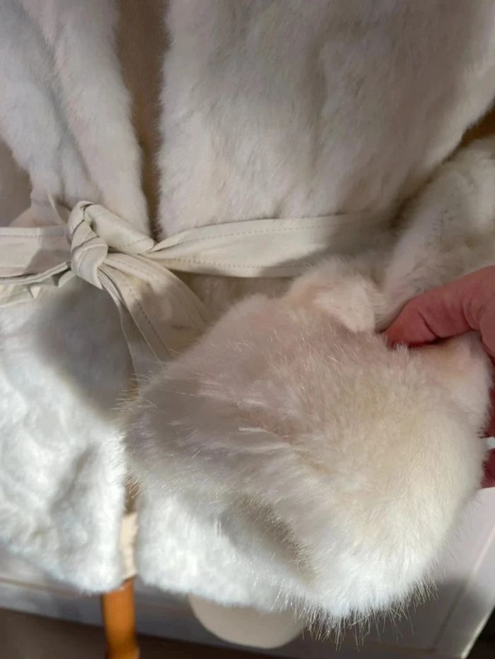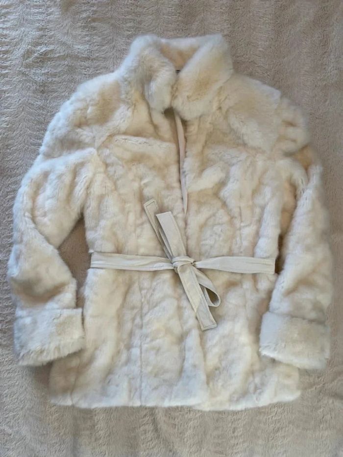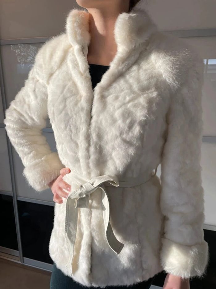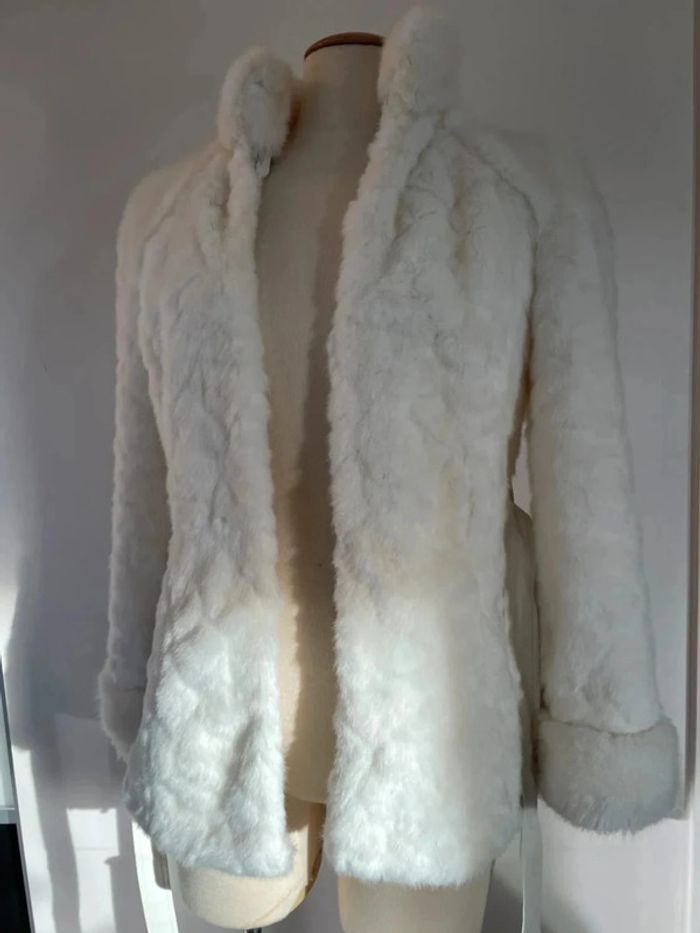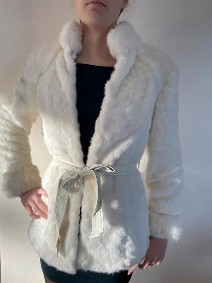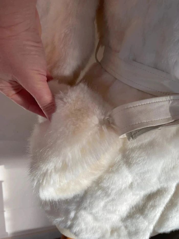 Sublime ✨ manteau façon fourrure de la marque Mango ! ✨ Il est d’un blanc crème somptueux et élégant, et sa ceinture simili cuir est géniale et pratique. Il se ferme par des crochets de haut en bas.