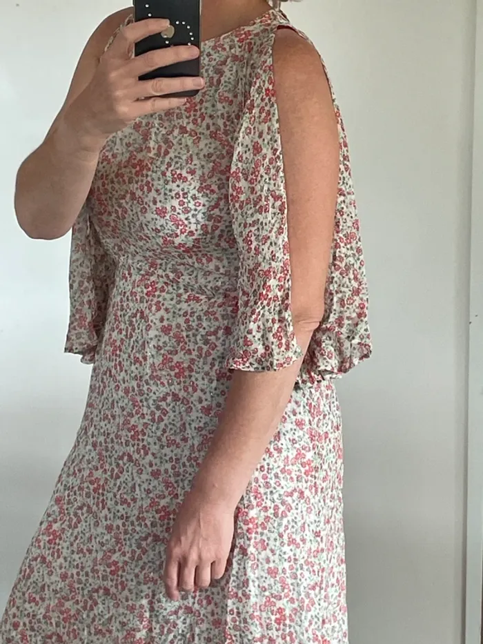 Superbe robe fleurie, très légère et fluide, idéale pour la rentrée. Jolis détails : épaules nus mais manches flottantes. • Taille : 42 • Coupe : droite, sans manches, col rond • Couleurs : fond beige clair avec petites fleurs roses et rouges • État : excellent, portée seulement quelques fois, comme neuve • Matière agréable et aérienne, parfaite pour les journées ensoleillées ou une soirée décontractée. Envoi rapide et soigné. Prix : doux 💌 Hashtags : #robe #robe42 #robeété #modefemme #lookété #florale #bohochic #stylefrais #vintagevibes #petitesfleurs #stylerentree #rentree2025