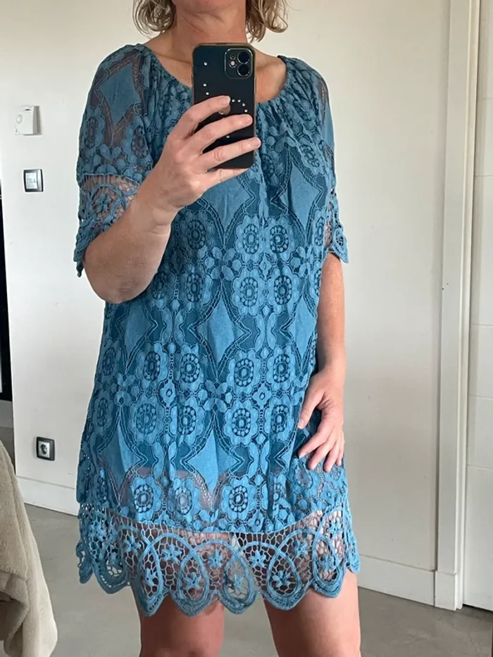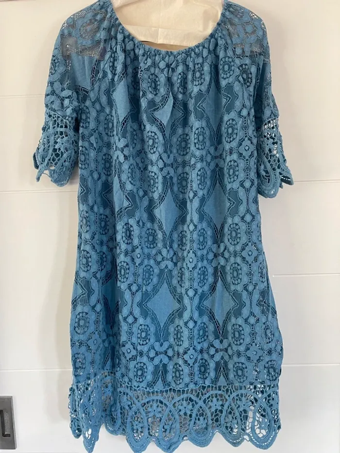 Robe bleue dentelle doublée 42 - photo numéro 1