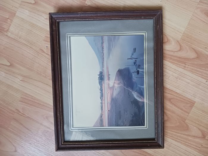 Cadre en bois marron avec photo paysage 38 x 30 cm