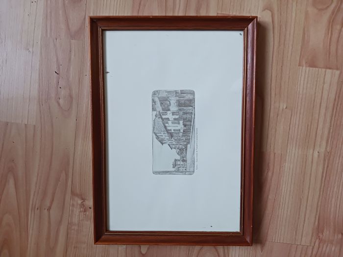 Tableau cadre bois marron clair gravure Parma Casa natale di Toscanini e piazza Serventi24 x 34 cm