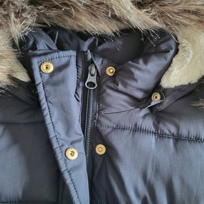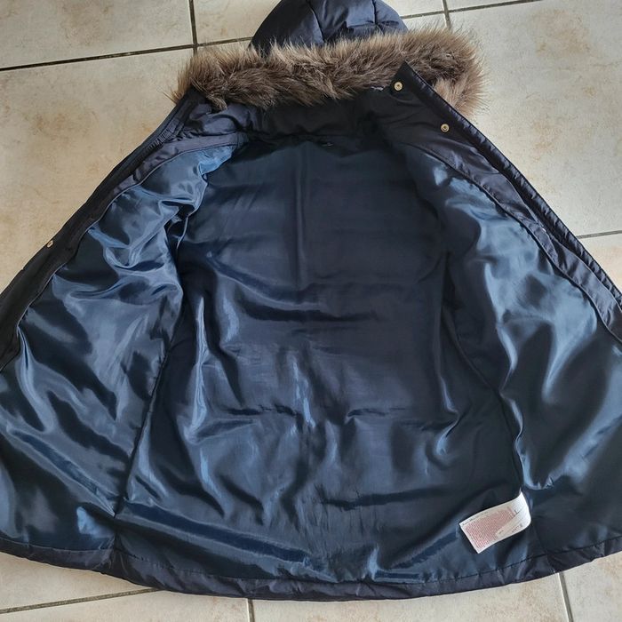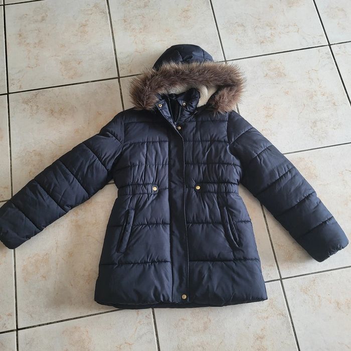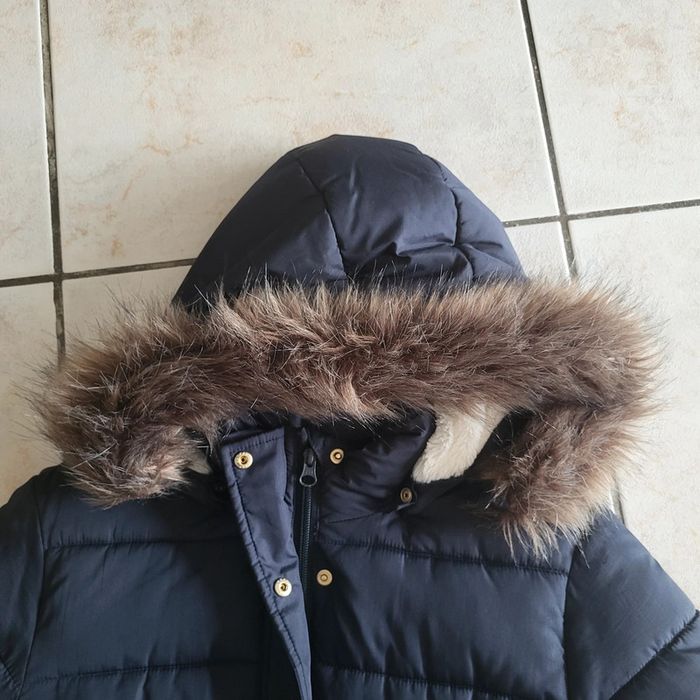 Name it Taille 12 ans Manteau tres chauds Bleu foncé Capuche amovible avec bande de fourrure synthétique amovible Longueur 70 cm Idéal quand il fait froid Taille resserrée 2 poches Ferme par zip et pression métal Excellent état peu porté, l hiver dernier ayant été assez doux dans le Tarn